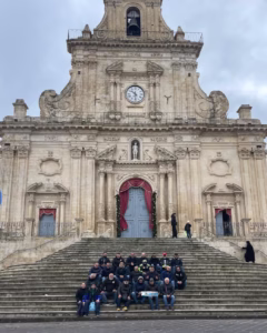 Dopo una passeggiata rilassante tra le vie del centro storico e qualche foto di rito, il gruppo ha ripreso la strada verso Pozzallo. Il ritorno è stato altrettanto suggestivo, con il sole  che illuminava i paesaggi circostanti, creando un’atmosfera magica e rendendo il viaggio ancora più memorabile.